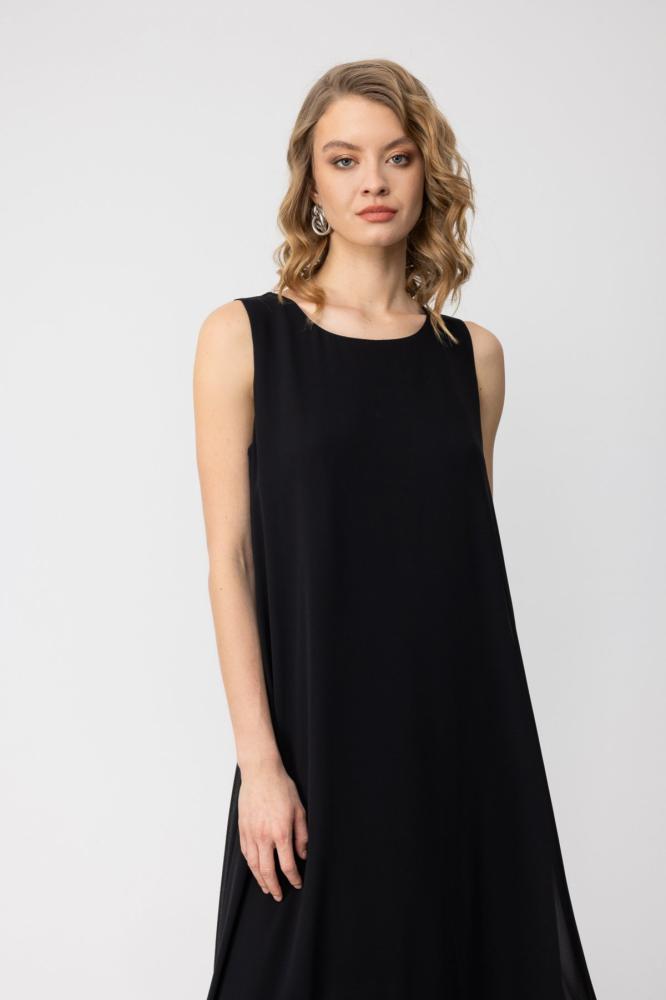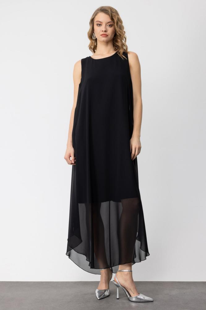 فستان نسائى برقبة دائرية بدون أكمام من الشيفون باللون الأسود من EKOL