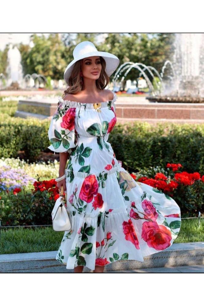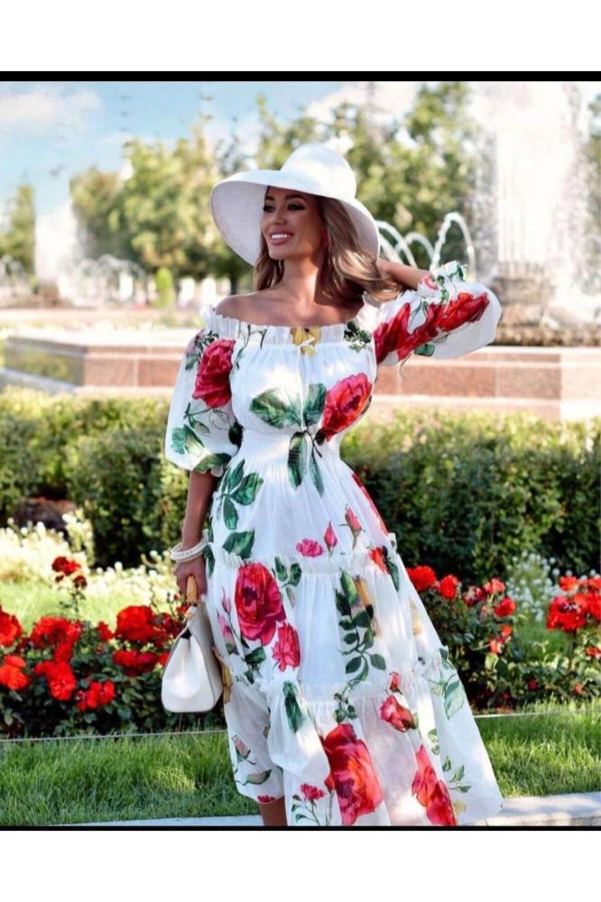 فستان نسائي أبيض منقوش ورد أحمر من brg-ilki - أصليلمزيد من موديلات الأزياء العالمية النسائية من خلال الرابطتوصيل للمنزل من 7 حتي 12يوم عمل