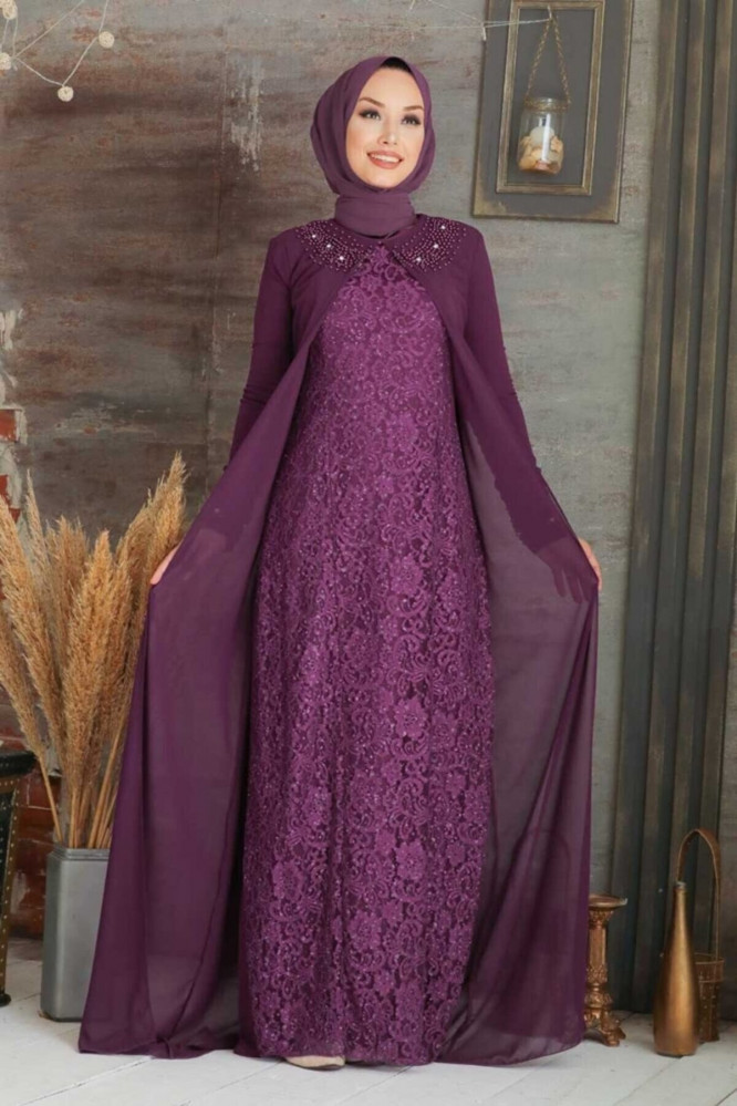 فستان سهرة نسائي موف داكن من Neva Style - أصلي