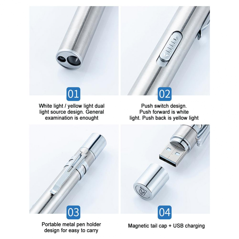القلم ضوء USB قابلة للشحن الطبية مصباح يدوي LED الضوء الأصفر الأبيض مصدر الضوء تلميذ القلم مصباح