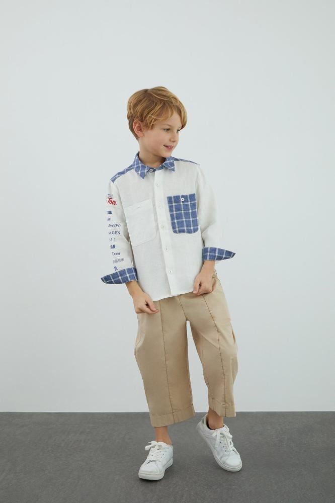 قميص أولادي أبيض و أزرق من gizia - أصلي