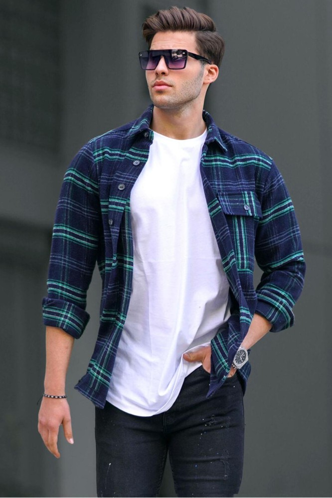 قميص رجالي كحلي منقوش من madmext - أصلي
