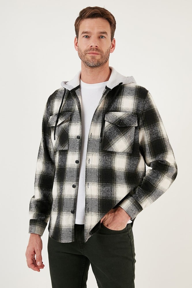 قميص رجالي مربعات أبيض و أسود بغطاء للرأس من Buratti - أصلي