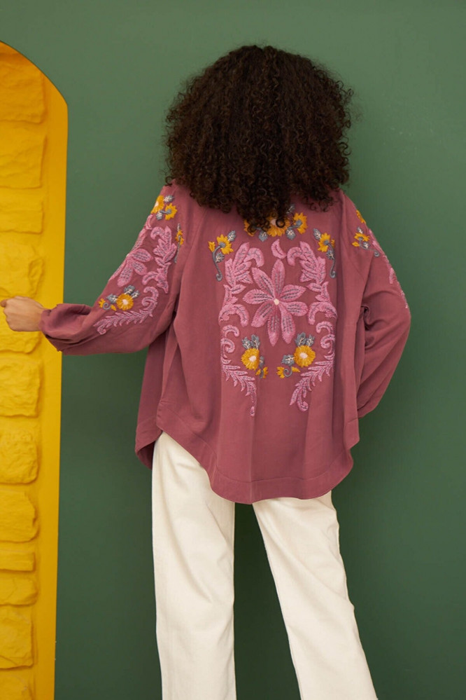 قميص كيمونو نسائي مطرز مقاس موحد من Orfeonegro -أصلي
