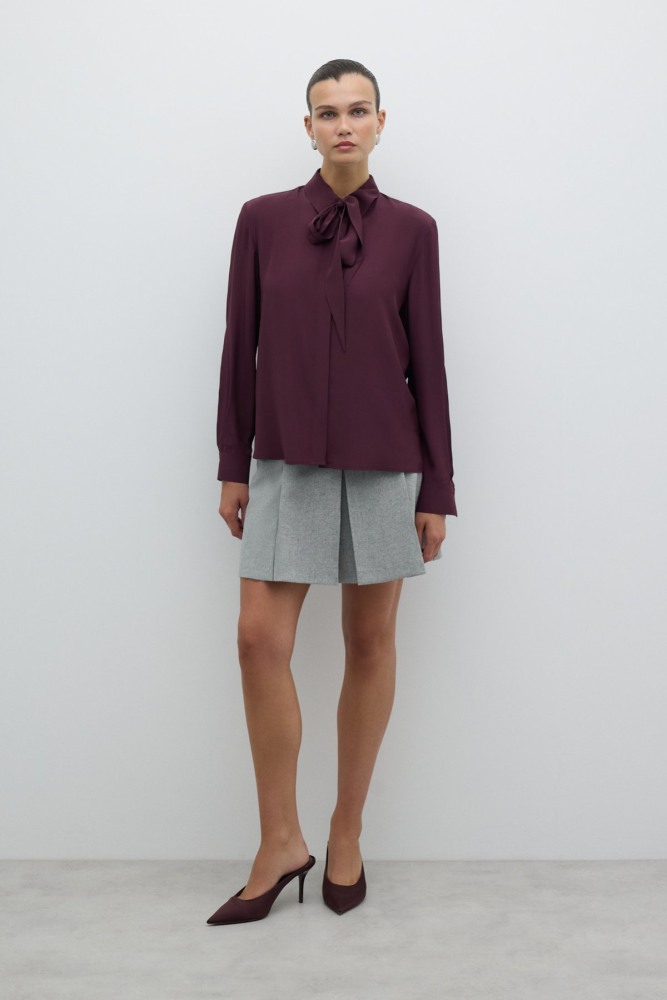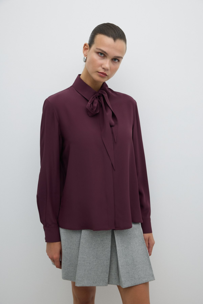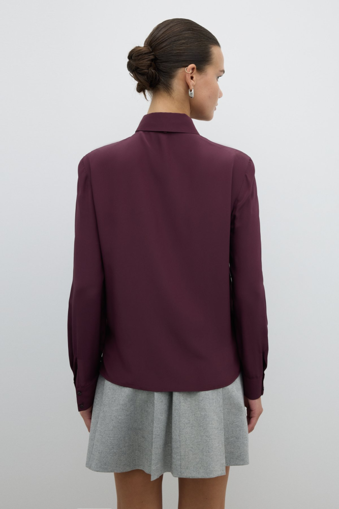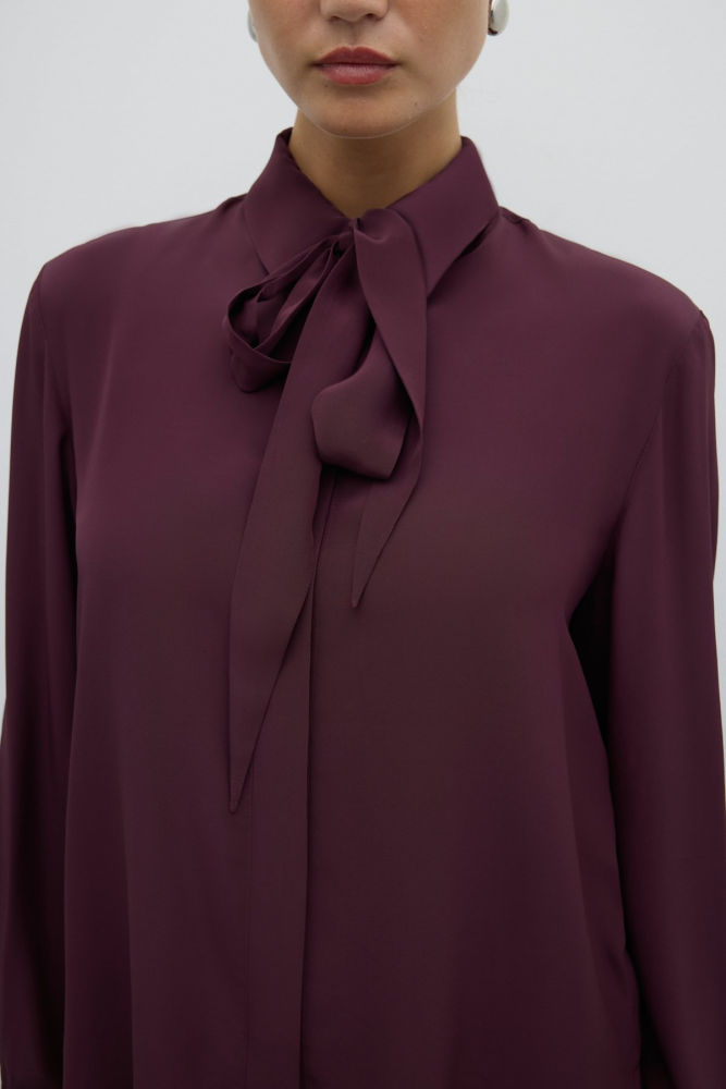 قميص عنابي أنيق من ROMAN بتصميم بياقة مميزة مع وشاح يضيف لمسة فخامة وأنوثة لإطلالتك. مصنوع من خامة فيسكوز 100% خفيفة وناعمة على البشرة، يعطيك راحة وأناقة في نفس الوقت. مثالي للبنات والنساء في السعودية اللي يدورون على قطعة عملية تناسب الدوام أو الطلعات الرسمية والكاجوال. قطعة تركية أصلية بجودة عالية تعكس ذوقك الراقي.