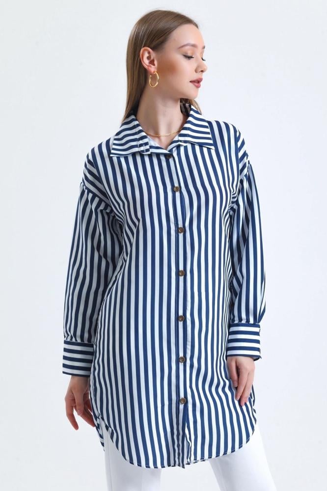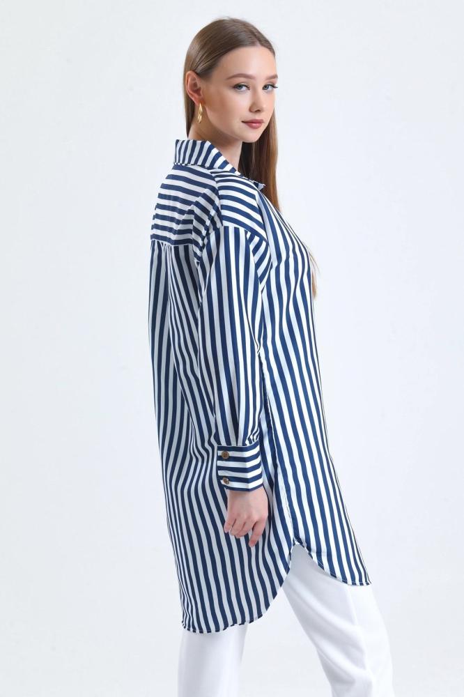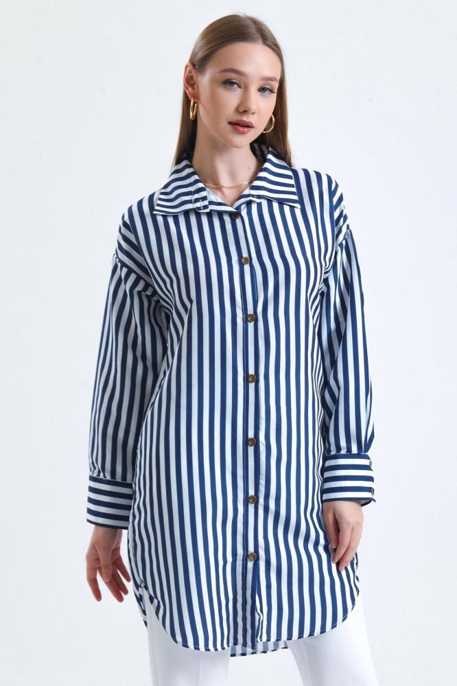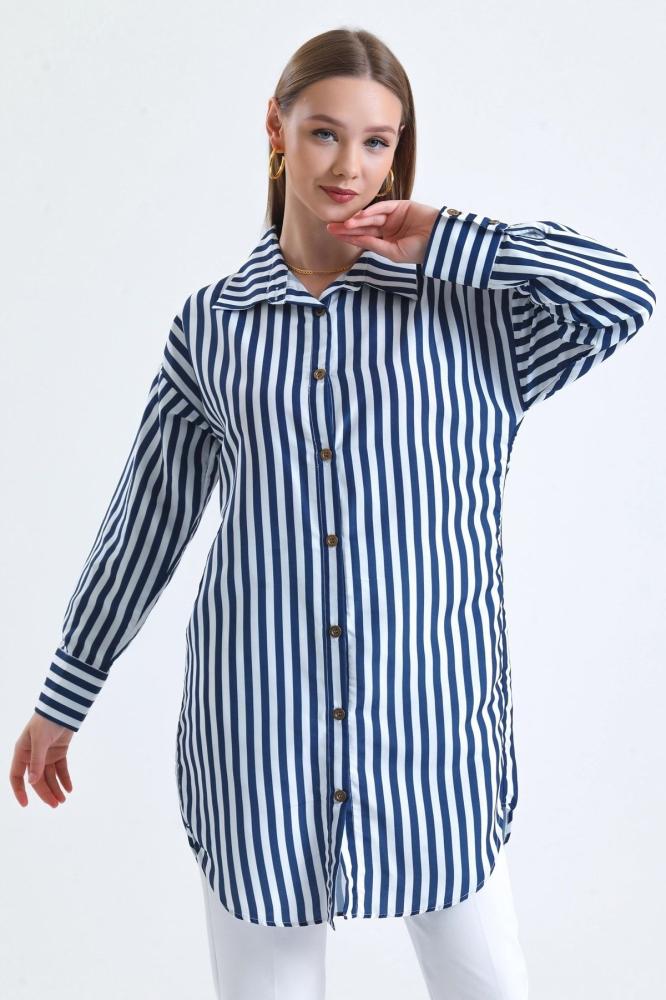 قميص نسائي مخطط أبيض و كحلي من md-trend - أصلي