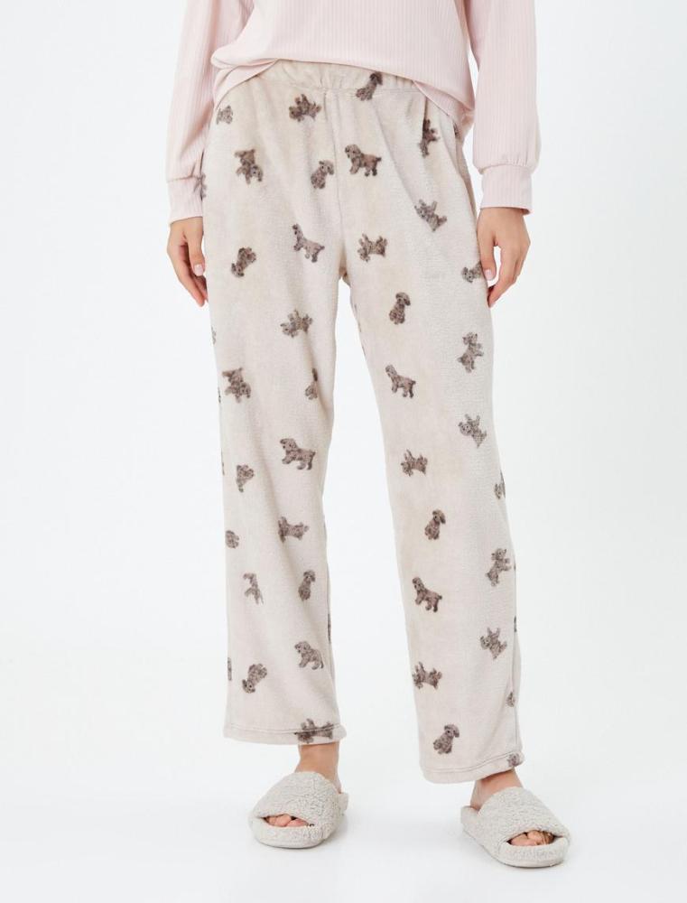 موديلات البيجامات التي ستضيف الأناقة إلى أسلوب ملابسك المنزلية موجودة في كوتون. ساق واسعة، قصة مريحة، طبعة كلب، وجزء سفلي من البيجامة من بين القطع المريحة.