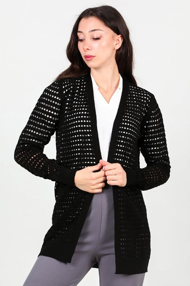 لو تسألين أي وحدة عن القطعة الأساسية اللي لازم تكون بدولابها، أكيد بتقولك الكارديجان الأسود. هذا التصميم التركي الطويل بفتحته الأنيقة يعطيكِ إطلالة محترمة وشيك بأي وقت، خامة الأكريليك الفاخرة تحسينها ناعمة ودافية بس ما تثقل عليكِ. الطول المتوسط يغطي بشكل راقي ويناسب كل المناسبات من الدوام للطلعات الكاجوال، واللون الأسود يخليه يتناسب مع أي لون ثاني بدولابك. مقاسه الموحد يريحك من موضوع القياس، وبصراحة هذي قطعة ما بتندمين عليها أبداً لأنها راح تخدمك سنين.