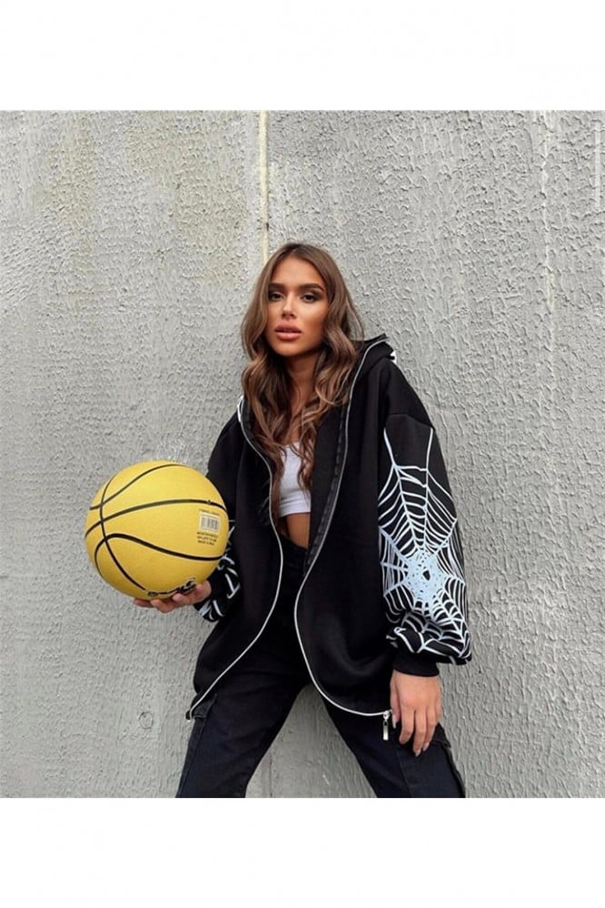 سويت شيرت Touz القوطي بشبكة العنكبوت وسحّاب كبير الحجمبلوفر كبير الحجم مقلم مقاس موحدTOUZMODAالتوصيل من 7 حتى 12 يوم عمل