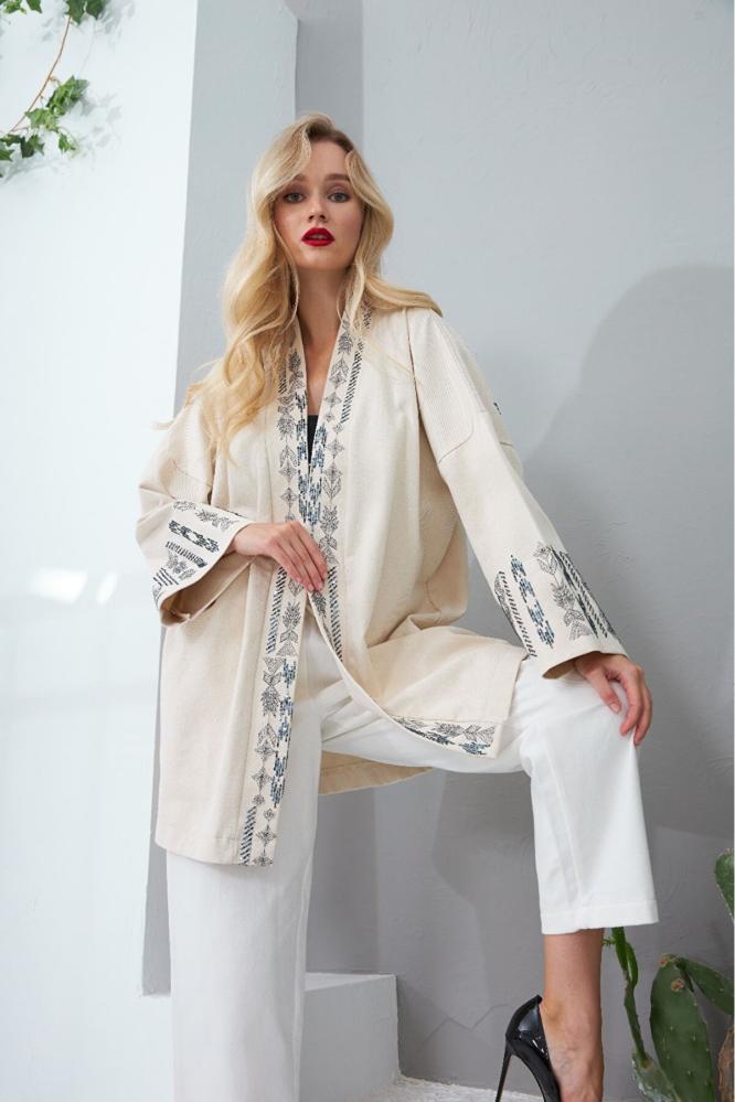 كيمونو نسائي جبردين بتطريز مقاس موحد من mia-noura - أصلي
