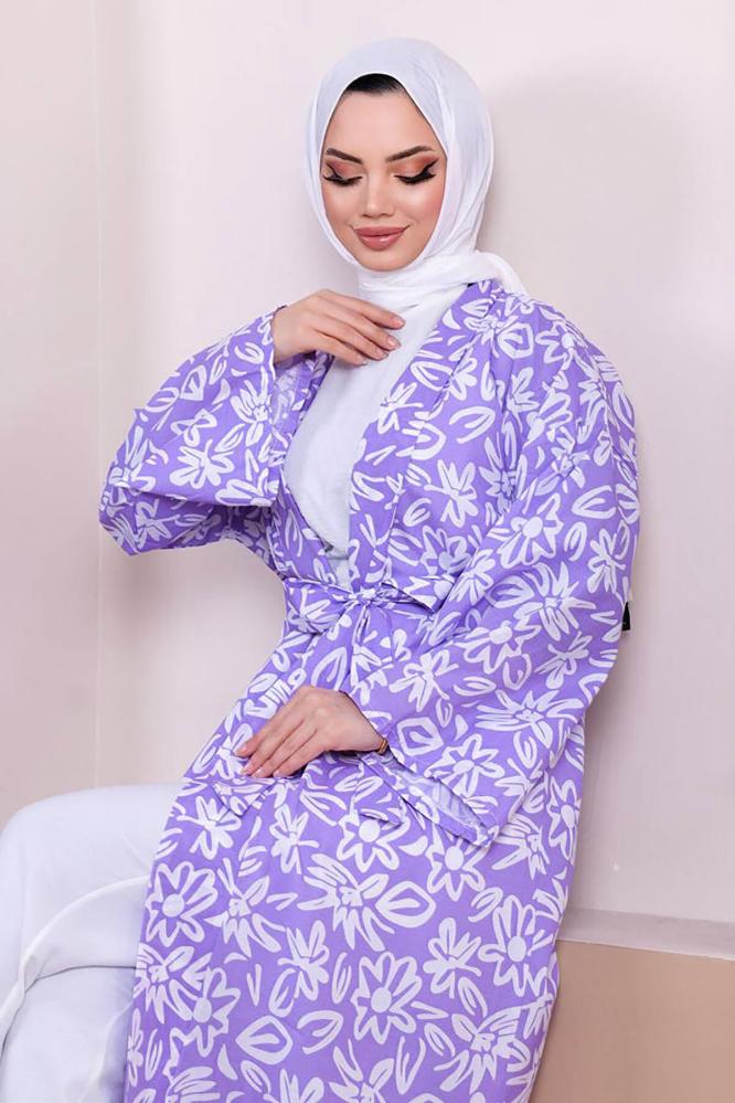 كيمونو نسائي طويل منقوش مقاس موحد من entesettur - أصلي