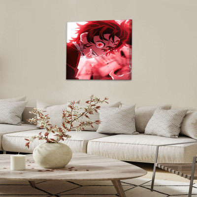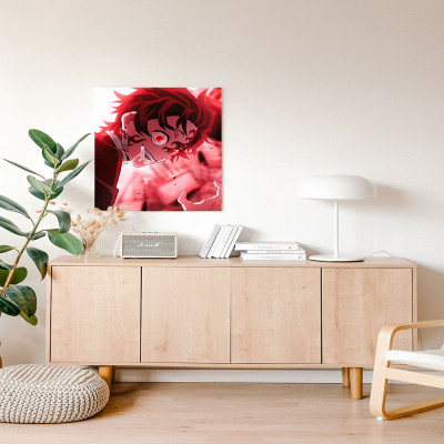 اللوحة مصممة بألوان حيوية وتفاصيل رائعة. الخشب يضيف للوحة أصالة وتفرد، تخلي كل زاوية في المكان مليانة بالروح الأنمي.