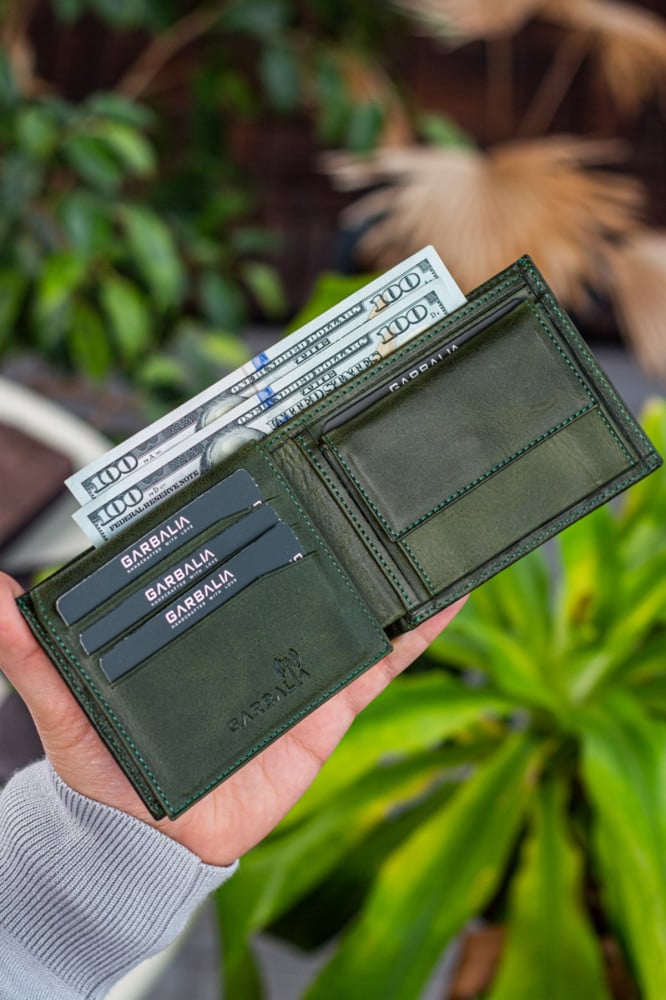 محفظة باللون الأخضر المصنوعة من الجلد الأصلي للرجال من Garbalia