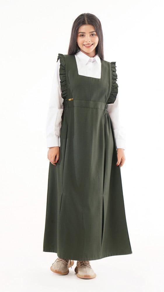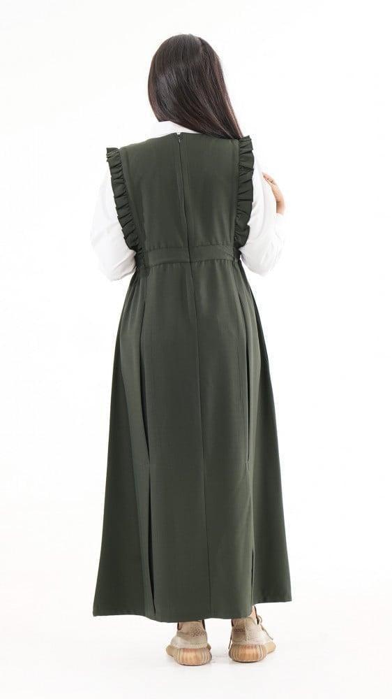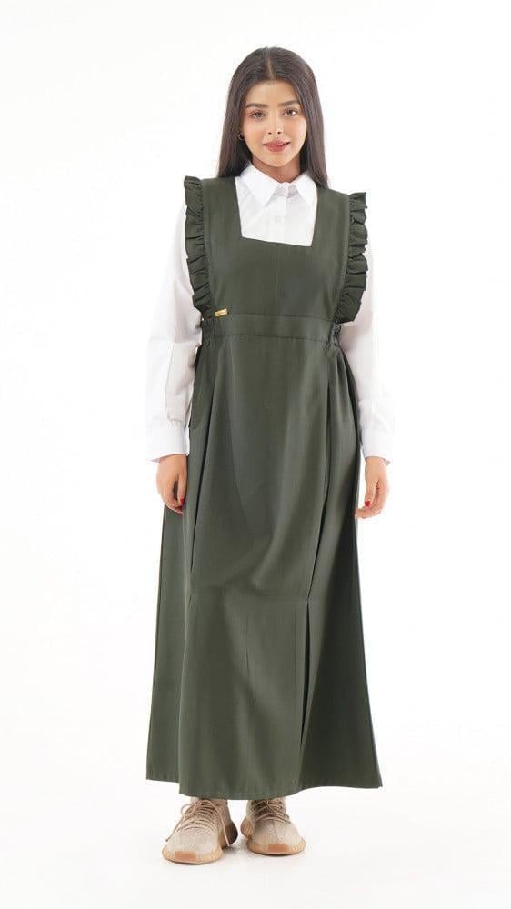 مريول متوسط زيتي شيال بكشكشة بتصميم عصري ومريح.
