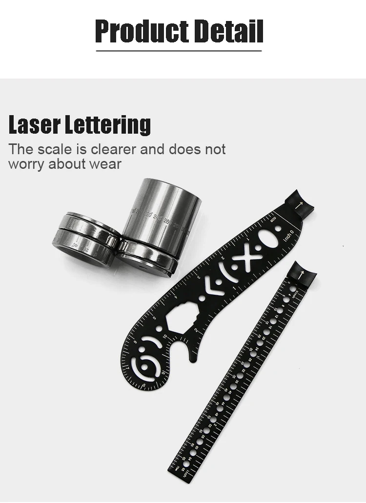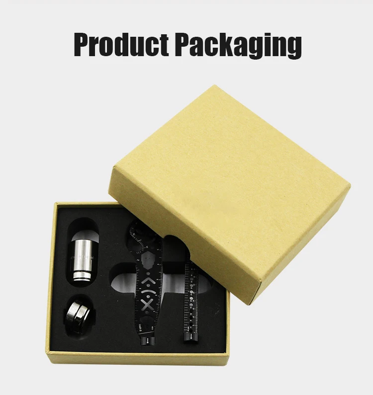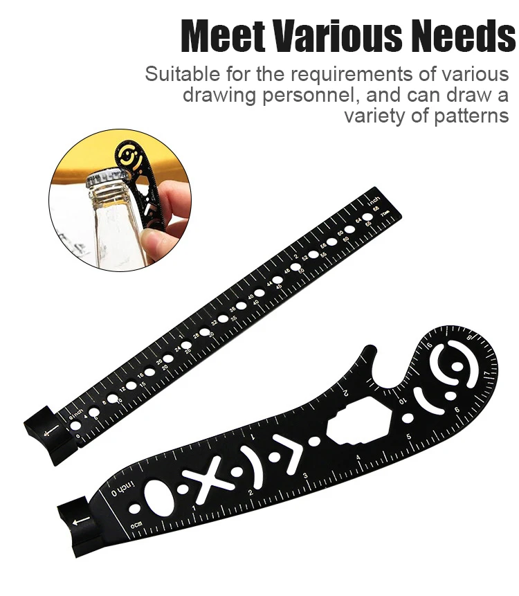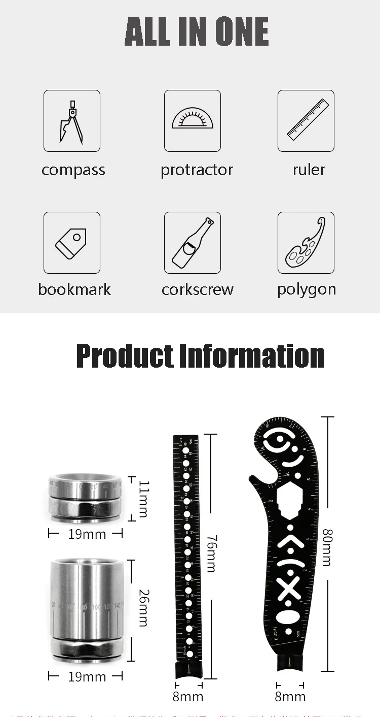 يحتوي على حامل قلم ، بوصلة/بوصلة ، مفتاح ربط ، مقياس ، فتاحة الزجاجات ودليل الرسم.