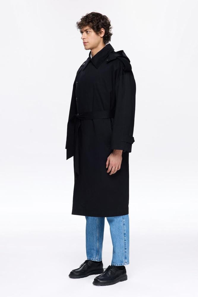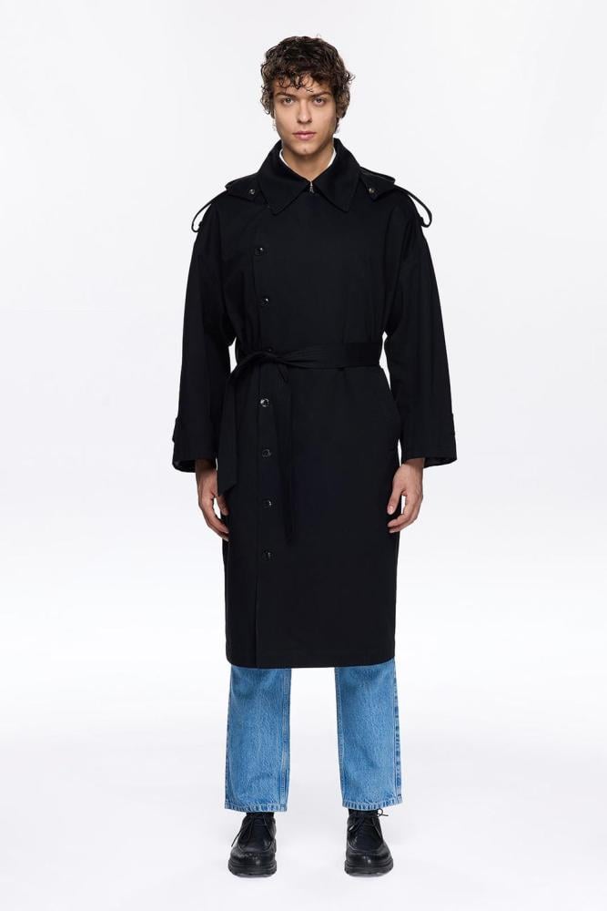 - تصميم ترنش طويل فاخر باللون الأسود.