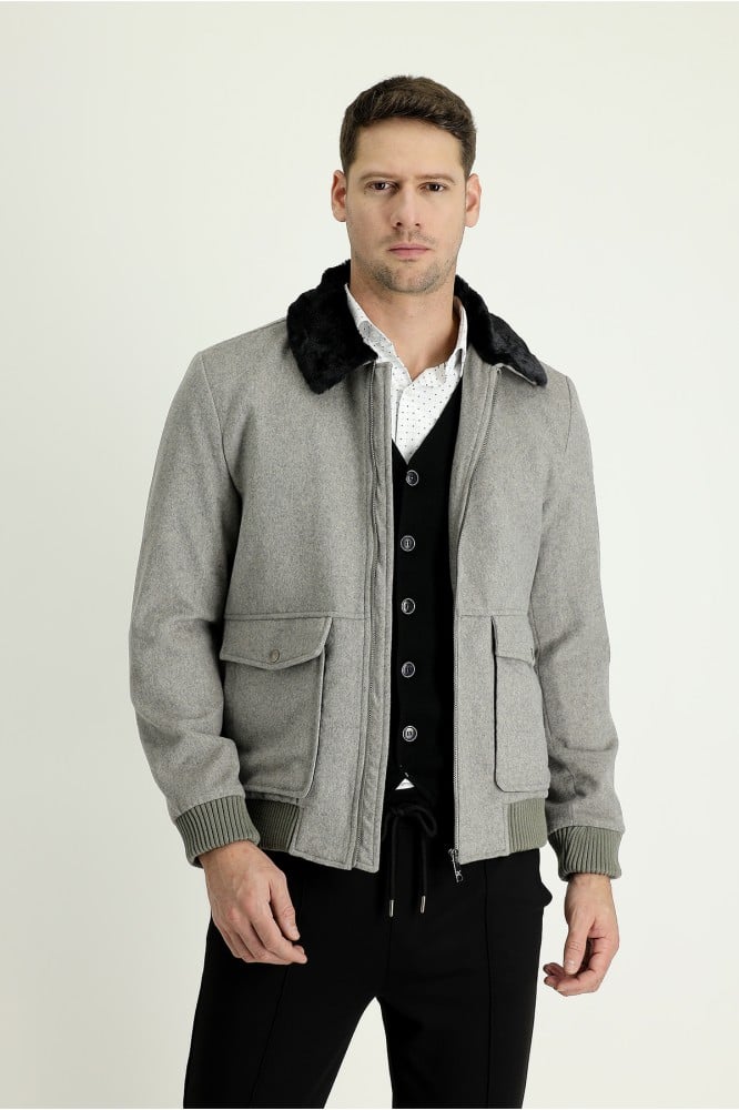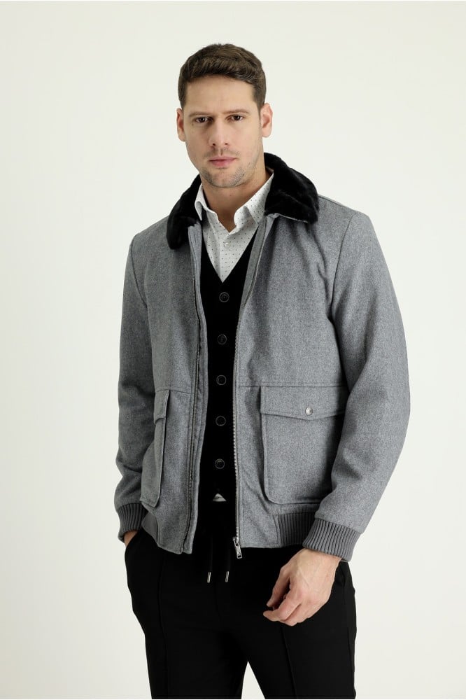 معطف صوف بياقة فرو رجالي من كيجيلي Kiğılı