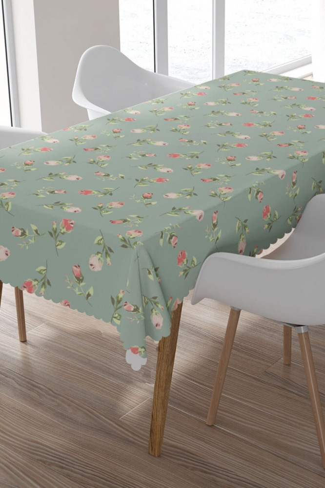 مفرش طاولة منقوش بورود على خلفية خضراء من Ysahome - أصلي