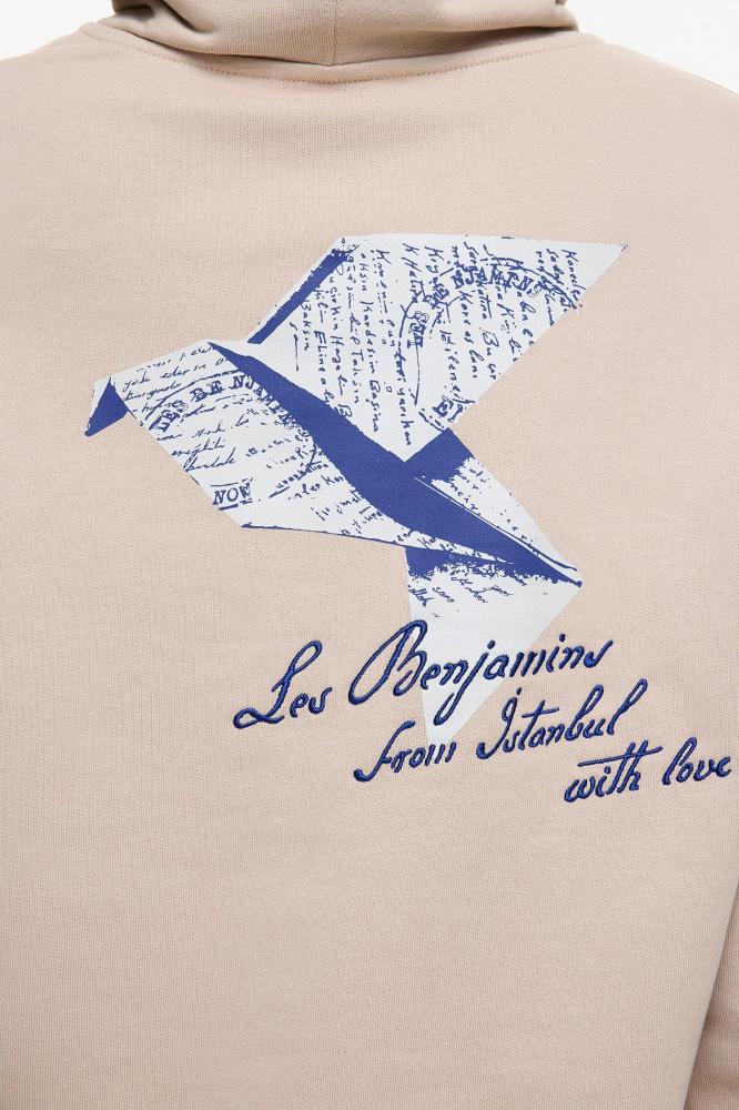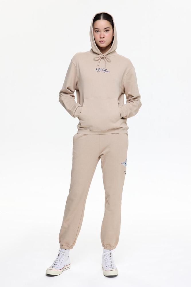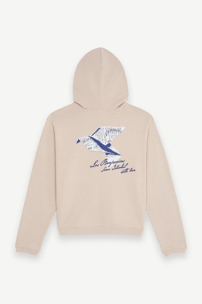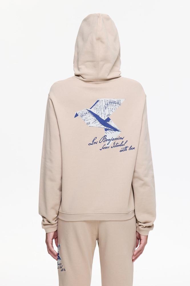هودي عملي ومريح مصنوع من 100% قطن ناعم، يتميز بتطريز ملفوف للعلامة التجارية على الجهة الأمامية والخلفية وطباعة مائية بشكل طائر تضيف لمسة عصرية مميزة. غطاء الرأس مع البرباط وجيب الكنغر يمنحان راحة ومرونة في الاستخدام اليومي 🤎