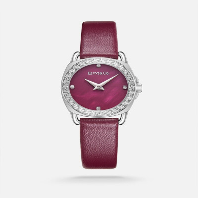 ELVVI ا ساعة نسائية جلد أحمر داكن و اطار شاشة فضى انيق من الفي ا ساعة تناسب كل لحظة في يومك!